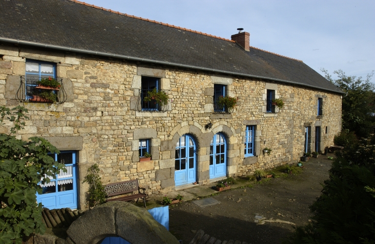 L'édifice est composé d'un long corps de bâtiment de plan rectangulaire comportant une salle surmontée d'une chambre à l'ouest, d'une dépendance et d'une salle surmontées d'un grenier au centre et d'une pièce surmontée d'un grenier à l'est. La maçonnerie est en moellon de granite avec encadrements de baies chanfreinés et chaînes d'angle en pierre de taille. Au centre de la façade sud, deux portes jumelées en arc plein cintre sont surmontées de deux rangs de voussoirs dont l'intrados chanfreiné est orné de boules en relief. La couverture est en ardoise. La cheminée du logis central porte une inscription sur le manteau : IV : LISION 1610.