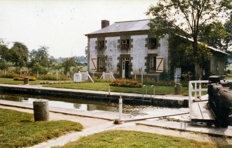 Le gros-oeuvre est en moellon de granite enduit avec encadrements de baies, chaînes d'angle et bandeaux horizontaux en pierre de taille. Toit à croupe couvert d'ardoise.