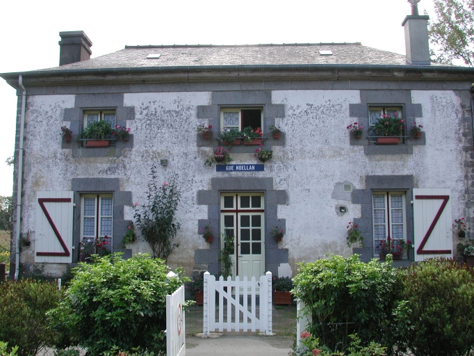 Sur la façade principale, deux grandes fenêtres de deux vantaux et quatre carreaux encadrent la porte avec imposte. Trois petites fenêtres de deux vantaux et deux carreaux sont les ouvertures de l’étage. Une barrière est située devant chaque fenêtre. Les linteaux et les pierres d’appuis des fenêtres et de la porte sur la façade sont en granite. Au rez-de-chaussée, les appuis des fenêtres sont saillants. L’encadrement est fait de pierres harpées de même longueur. Deux fenêtres sur la façade arrière sont encadrées par du béton au rez-de-chaussée. Le chaînage d’angles est aussi en granite harpé. Des fenêtres de toit, velux, sont aussi visibles. L’enduit est appliqué dans l’intervalle entre les pierres servant à l’encadrement et aux chaînages d’angles. Un cadre sculpté dans le granite, prévu pour la fermeture des volets, peut être observé dans l’encadrement de la porte et des fenêtres. Comme le seuil de la porte, les pierres de soubassement sont aussi en granite.