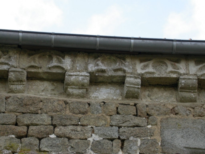 Ce bâtiment est construit en moellon équarri de granite et possède une toiture à longs pans couverte d'ardoise. La façade est percée de trois travées, composées de baies à encadrements de granite. La porte centrale du rez-de-chaussée, en anse de panier, est surmontée d'une accolade saillante. Les deux fenêtres de ce niveau possèdent des appuis saillants et sont équipées de grilles en fer forgé. Les trois fenêtres de l'étage présentent également des appuis saillants en granite. De plus, la corniche à modillons en pierre calcaire est surmontée de trilobes. Une corniche identique à celle-ci existe sur le mur sud de l'église paroissiale toute proche.