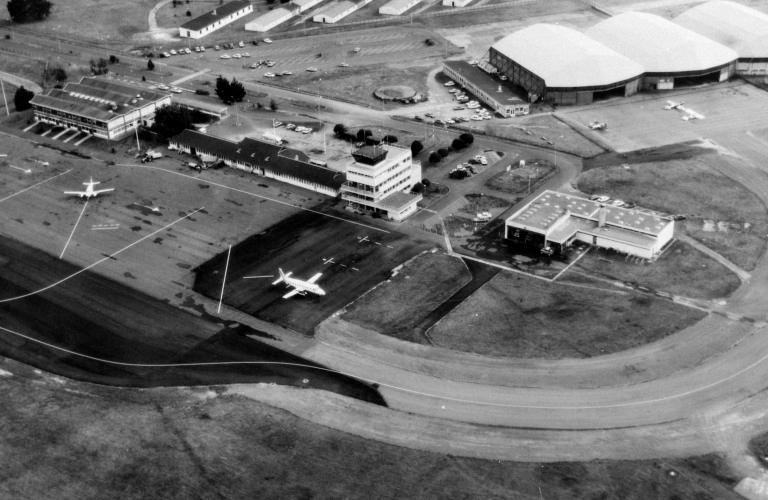 L'aéroport civil a été construit en 1932. Il a été conçu dans le contexte d'une dynamique de développement du transport aérien postal et de passagers. Son inauguration a eu lieu en juillet 1933. Cet aéroport est transformé, durant la seconde guerre mondiale, en une importante base aérienne de guerre, ce qui engendre une transformation de la commune de Saint-Jacques-de-la-Lande. Dans les années 1930, l'activité civile de l'aéroport était très peu développée et déjà, sa fonction militaire était importante car une base aérienne de l'armée de l'air y avait été créée. Cette base aérienne abritait, à la fin des années 1930, le Groupe Aérien d'Observation (G. A. O.) numéro 510 qui disposait d'infrastructures importantes et de 38 hangars, dont certains existent encore aujourd'hui. Dès le début de la seconde guerre mondiale, l'aéroport de Saint-Jacques-de-la-Lande sert uniquement de base aérienne à l'armée ; il est également utilisé par les avions anglais et des aviateurs polonais y sont réfugiés et y donnent des cours de pilotage. Dès les mois de juin-juillet 1940, le terrain d'aviation de Saint-Jacques est utilisé par l'aviation allemande comme base de départ pour des attaques sur l'Angleterre. En 1941, les allemands commencent des travaux de transformation du terrain d'aviation. Pour ce faire, ils rasent la partie centrale du village qui comprenait la mairie, l'école publique de garçons, le château du Pèlerinage et une trentaine de maisons d'habitation. En août 1944, l'US-Air Force prend possession de la base de Saint-Jacques. Le terrain d'aviation est récupéré par l'armée de l'air au départ des américains et il retrouvera une utilisation civile en 1946.