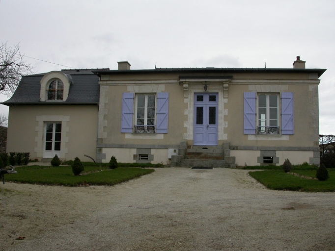 La maçonnerie de cette construction est enduite ; la toiture à croupes est couverte d'ardoise. Les chaînages d'angle, encadrements de baie et le bandeau sont en granite et en pierre calcaire. Cette maison est construite sur une cave ; l'accès à la porte d'entrée se fait par un perron de cinq marches en granite. L'entrée est composée d'un vestibule dont le sol est pavé de carreaux de ciment et les murs sont recouverts de boiseries.