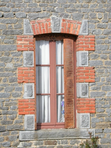 Maison construite en moellon de granite régulier. Le chaînage des angles et les encadrements des baies sont en brique et en granite alternés. Le toit est à croupe.