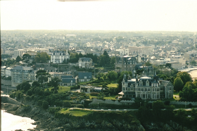 A partir de cette date et jusqu´au début des années trente, la ville ne va cesser de se développer et l´ancien bourg de Saint-Enogat, situé plus à l´ouest, finira par être complètement absorbé par l´extension de cette nouvelle ville qui prendra le nom, dès 1879, de Dinard-Saint-Enogat. Ainsi, au temps des découvreurs et de la villégiature modèle succède, dès les années 1870, le temps des investisseurs et des promoteurs. Joseph Rochaïd Dahdah, comte libanais en exil, arrive à Dinard en 1873. Cet homme entreprenant dispose de capitaux importants et va marquer par ses nombreux projets d´intérêt général l´urbanisation du centre-ville de Dinard (ind. n°3,14, 17,61). Il acquiert notamment de nombreux terrains dans la Vallée dont il va assainir le versant oriental. Albert Lacroix, quant à lui, investit à Saint-Enogat et construit à partir de 1875 le lotissement des Villas de la Mer (ind. n°6). C´est également en 1879 qu´Auguste Poussineau rachète le parc du Château de la Malouine au comte d´Audiffret Pasquier afin d´y installer un lotissement balnéaire de standing. Le développement de la station en plusieurs pôles est une des caractéristiques de Dinard qui ne possède pas de programme unitaire d´urbanisation comme à Paramé et à Saint-Lunaire. Néanmoins, la physionomie de la nouvelle ville s´est dessinée très tôt, puisque trente années ont suffi à en déterminer les différents quartiers.