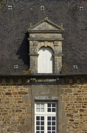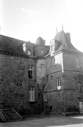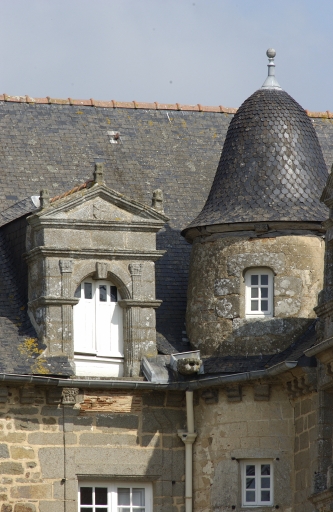 Logis. Plan en U. Corps central rectangulaire asymétrique encadré de deux ailes de volumes différents. Sur l'aile droite, avec tourelle en encorbellement, est accolé à l'est un bâtiment rectangulaire avec une ancienne tour d'escalier dans oeuvre qui a été tronquée. Le décor de la façade Sud est significatif de la première renaissance, dorique en rez-de-chaussée, ionique à l'étage et corinthien aux lucarnes. Façade nord symétrique à 5 travées, sans décor hormis les frontons des lucarnes. Le gros oeuvre présente un appareillage différent en moellons de granite et en pierre de taille. De la pierre calcaire a été utilisée notamment aux lucarnes. A noter également des armoiries apposées aux lucarnes (non lues) et un cadran solaire dans l'angle de l'aile Est.