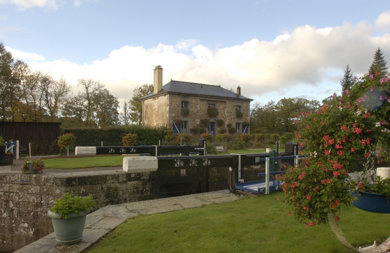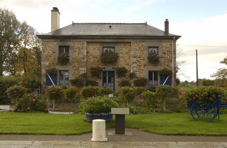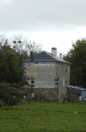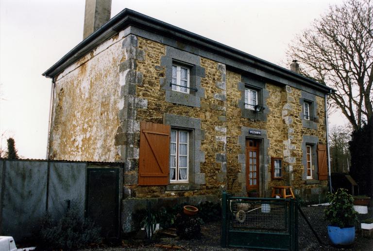 Sur la façade, deux grandes fenêtres de deux vantaux et quatre carreaux encadrent la porte avec imposte. Trois petites fenêtres de deux vantaux et deux carreaux sont les ouvertures de l’étage. Une barrière en bois est située devant chaque fenêtre. Les linteaux et les pierres d’appuis des fenêtres et de la porte sur la façade sont en granite. L’encadrement est fait de pierres harpées de même longueur. Le chaînage d’angles est aussi en granite harpé. L’enduit est appliqué dans l’intervalle entre les pierres servant à l’encadrement, aux chaînages d’angles et celles de la corniche.