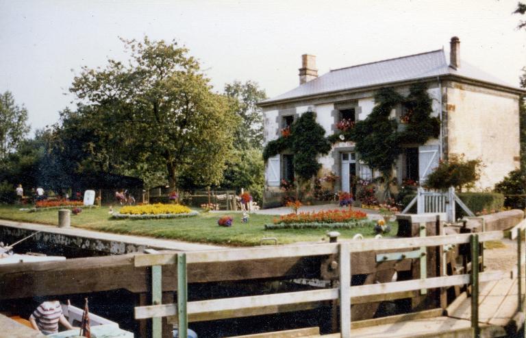 Cette maison est appareillée de pierre de grès et a un décroché en retrait au centre de la façade. Les angles et les entourages sont en granite.