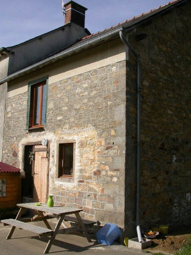 Cette ancienne ferme se composait sans doute d'une pièce unique à vivre du côté de la cheminée, et de deux parties de dépendance sous le même toit. Sur la façade enduite, seule la pièce d'habitation possède une fenêtre. Cet ensemble fut construit au 19e siècle. Par la suite, la partie élevée en pierre fut ajoutée au début du 20e siècle pour agrandir le logis. Cette ferme possède également une petite porcherie construite en terre et un grand bâtiment, également en terre, qui fut peut-être à l'origine un ancien logis.