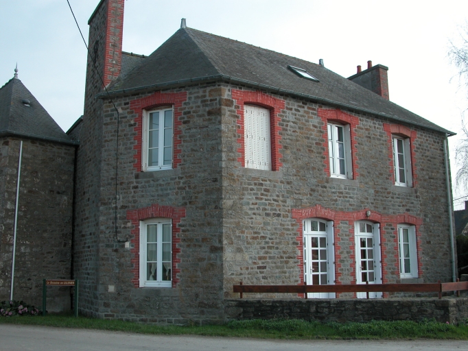 Implantation d'angle. Logis à étage recouvert d'une toiture en pavillon. Encadrements des baies en brique. Enclos antérieur récent. Orientation ouest. A noter initiales sur les chaînages des souches de cheminées : G.R.