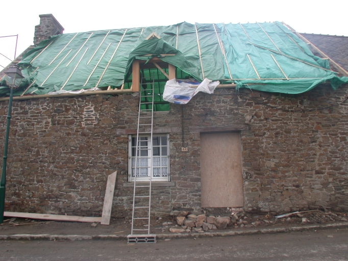 Implantation à l'aplomb de la rue. Maison en partie mitoyenne dite maison élémentaire à une pièce. Orientation ouest.