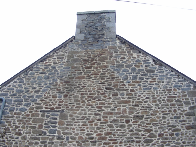 Maison construite en moellon de granite avec encadrements des ouvertures en pierre de taille de granite. La façade est ornée d'une niche à statue.