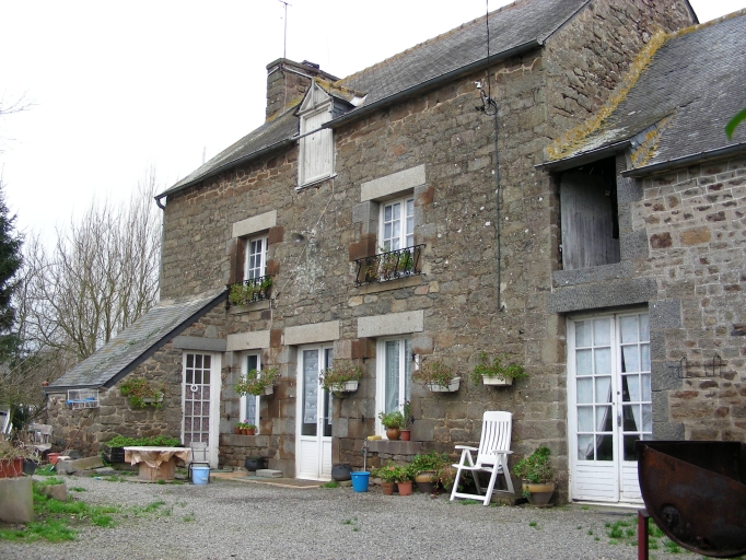 Maison construite en moellon de granite avec encadrements des ouvertures en gros appareil de granite. Possède un cellier en appentis postérieur construit en terre, ainsi qu'une soue à cochons également en terre. La dépendance accolée au logis est construite comme celui-ci.
