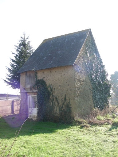 Maison construite en moellon de granite et en terre, appentis latéral en moellon de granite et cellier en face construit en terre.
