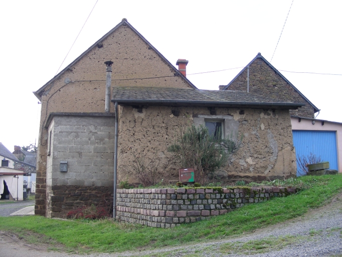 Maison construite en moellon de granite et en terre enduite. Possède un appentis latéral en terre.