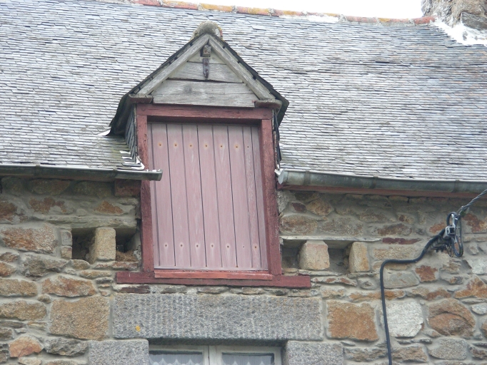 Maison construite en moellon de granite avec encadrements des ouvertures en pierre de taille de granite. La façade est percée de deux jours d'escalier et la gerbière est entourée de deux trous de boulin de chaque côté pour accueillir des pigeons.