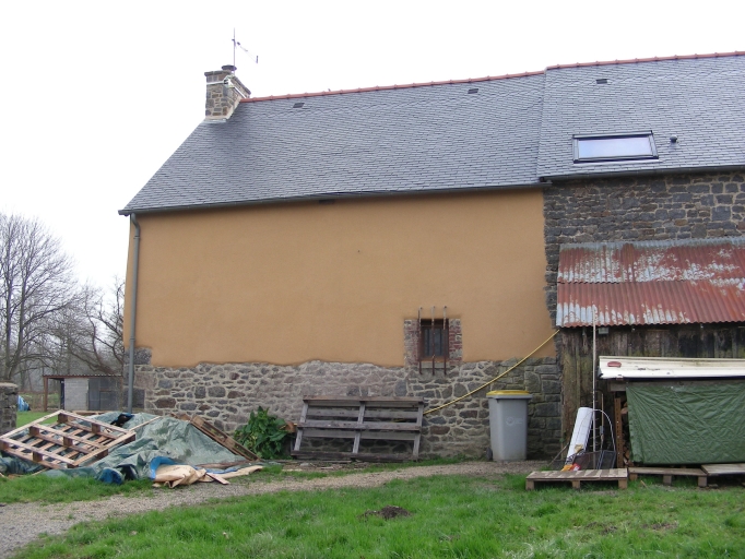 Maison construite en moellon de granite de Lanhélin avec encadrements des ouvertures en granite. Le mur arrière et le pignon sont en terre recouverte d'un enduit. La façade est ornée d'une niche à statue. Possède un puits.