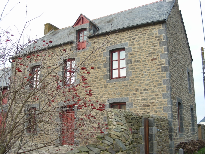 Maison construite en moellon de granite avec encadrements des ouvertures et chaînage des angles en pierre de taille de granite. La façade arrière est percée d'un oculus en brique.