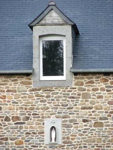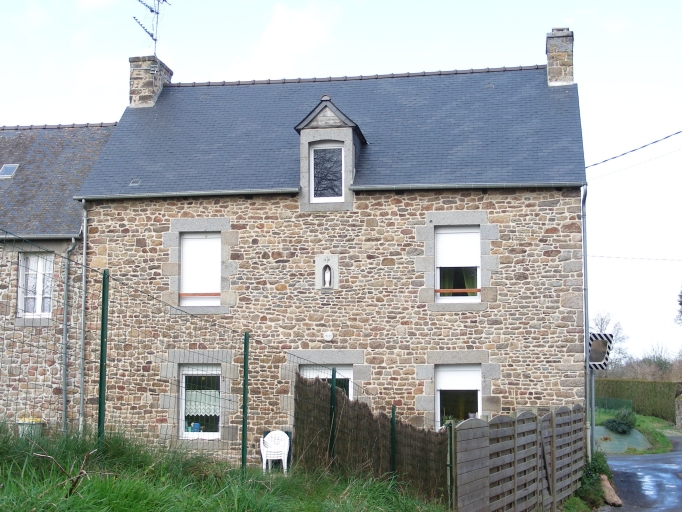 Maison construite en moellon de granite, les entourages des baies sont en pierre de taille de granite. Une niche à statue orne la façade sud.