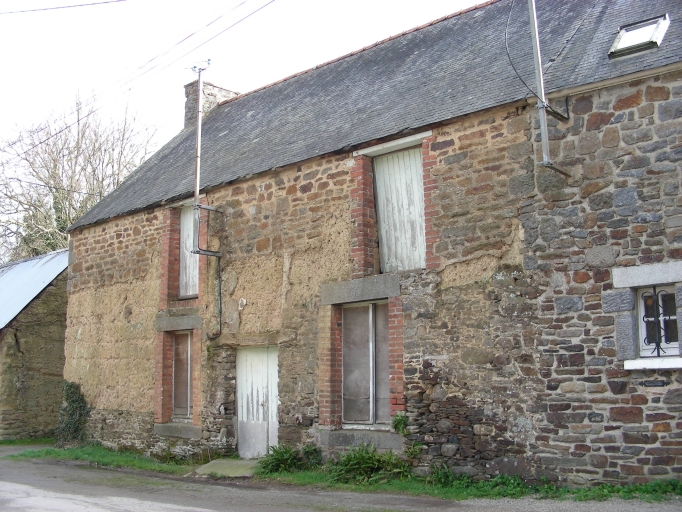 Maison construite en terre sur un solin en moellon de schiste et rehaussée en moellon de granite et de schiste. Les ouvertures ont des encadrements en brique et linteau bois ou béton. Inscription sur le linteau en bois de la porte M : L 1825 T : C.