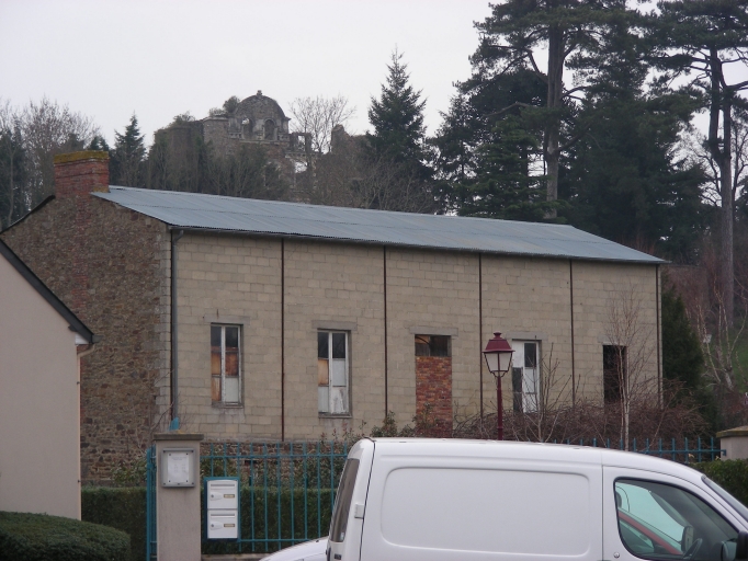 La maçonnerie de cette construction est composée de moellon de granite et de schiste. La partie supérieure de la maçonnerie est différente de la partie inférieure. Le toit est couvert d'ardoise et le comble à surcroît est accessible grâce à trois portes hautes pendantes à linteaux cintrés. Au nord, se trouvent d'anciens entrepôts.