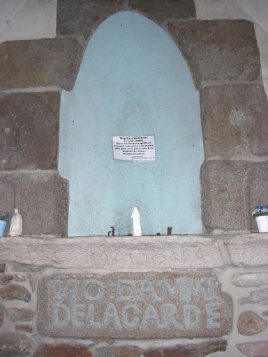 Cet oratoire est composé d'une niche à statue en arc brisé en granite. La niche est surmontée de la date de 1753. Sous cette niche, se trouve l'inscription suivante : NO : DAMME/DELAGARDE. L'oratoire prend la forme d'une petite chapelle dont la porte est en arc brisé. Dans cet arc brisé, se trouve un trilobe.