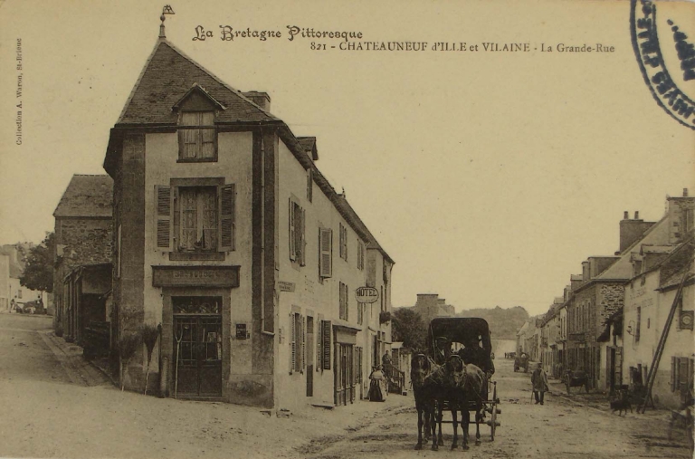 « la Bretagne pittoresque». Châteauneuf d'Ille-et-Vilaine. La Grande-Rue. Carte postale, collection A. Waron St-Brieuc, [s. d.] (A.D. Ille-et-Vilaine 6 Fi25).