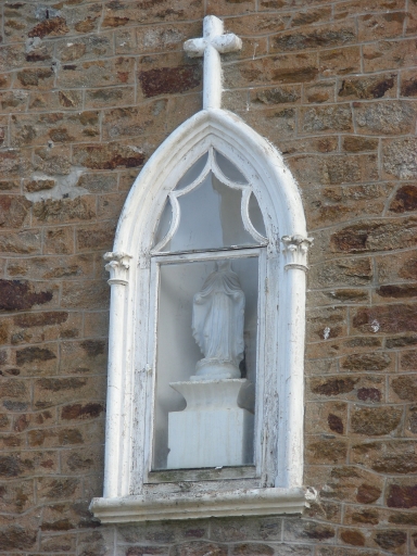 Ce bâtiment est élevé en moellon de schiste et de granite ; les encadrements de baies sont réalisés en pierre de taille de granite. Les baies forment deux travées en façade ouest ; entre les deux baies de l'étage, se trouve une niche à statue.