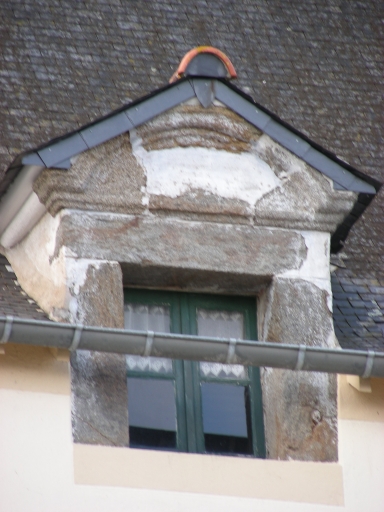 La maçonnerie de cette construction est totalement enduite, sa toiture à forte pente est couverte d'ardoise et possède un coyau. Les murs latéraux de la construction possèdent un encorbellement. Enfin, la lucarne est réalisée en granite ; elle est surmontée d'un fronton semi-circulaire.