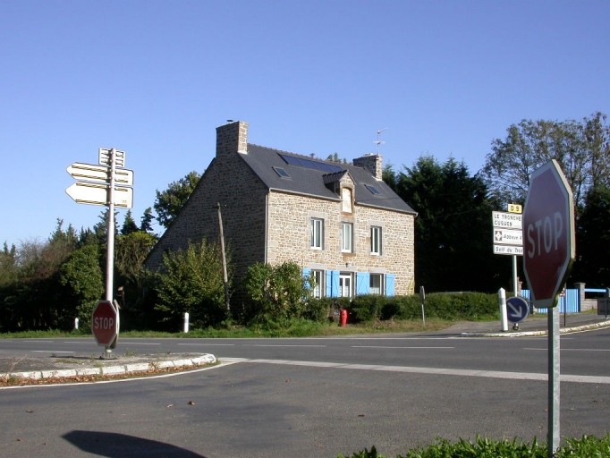 Cette maison est construite en moellon de granite ; les chaînages d'angle et les encadrements de baies sont réalisés en pierre de taille. La façade est rythmée par des percements réguliers organisés en trois travées. La travée centrale se termine par une porte haute pendante dont le linteau est cintré. Il existe un appentis postérieur construit également en moellon de granite.