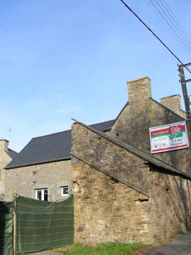 Cette construction témoigne d'une maçonnerie de moellon de granite ; elle est couverte d'un toit à longs pans en ardoise. Les baies possèdent des encadrements en pierre de taille de granite ; les deux portes hautes pendantes présentent des linteaux cintrés. Au nord, s'élève une aile en retour d'équerre ; elle est construite en moellon de granite de Lanhélin.