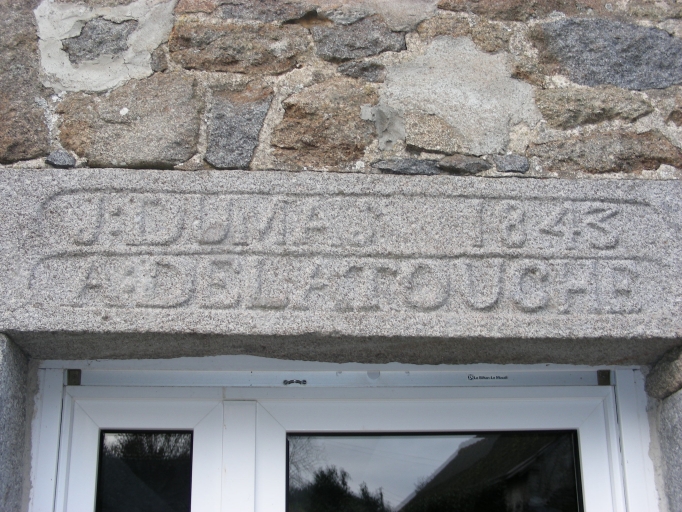 La construction de ce bâtiment remonte, comme l'indique une date portée sur le linteau de la porte, à 1843. Les commanditaires ont aussi fait apposer leurs noms sur le linteau, il s'agit de J. Dumas et A. Delatouche. La façade a été modifiée, ainsi, la fenêtre la plus à l'ouest est une création.