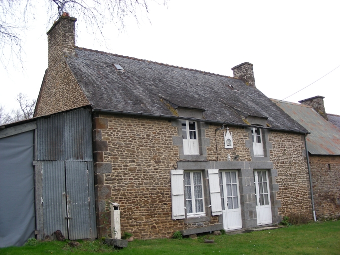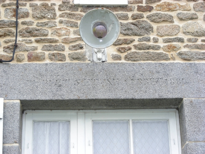Ce bâtiment présente une maçonnerie de moellon de granite ; le toit est quant à lui couvert d'ardoise. Les encadrements de baies et les chaînages d'angle sont réalisés en pierre de taille. Le linteau de la porte témoigne d'une inscription difficilement lisible : B ET INE LEBRET 1881. La façade est également percée d'une niche à statue qui se trouve entre les deux portes hautes pendantes qui desservent le comble.