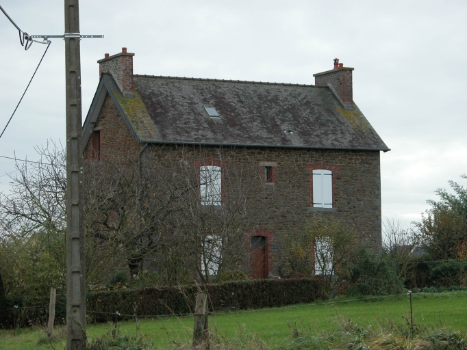 Logis isolé. Elévation de type ternaire. Toiture débordante. Encadrements des baies de formes variées en brique. Orientation sud.
