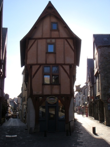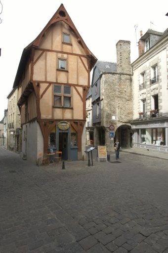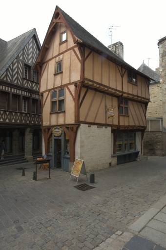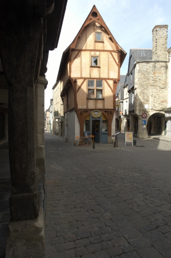 Cette maison est construite en pan de bois et présente un double encorbellement. Le rez-de-chaussée présente une maçonnerie de moellon. Il existe un étal en bois au rez-de-chaussée, sur le mur gouttereau nord, côté rue Poterie. La construction s'élève sur trois niveaux sous le comble. Au premier étage, une fenêtre à meneau et croisillon en bois est percée sur la façade Est. En façade postérieure (ouest), se trouve au rez-de-chaussée une porte en anse de panier murée. Le toit à longs pans est couvert d'ardoise et présente un coyau (égout du toit).