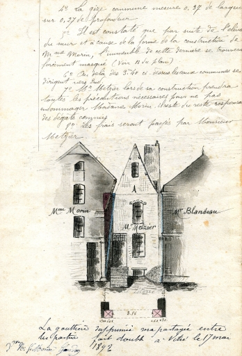 Cette maison est encore assez représentative des constructions en pan de bois modestes qui pouvaient exister dans les villes de la fin du Moyen Age. Ainsi, elle présente son pignon sur la rue et est implantée sur une parcelle en lanière. Bien qu'elle ait été recouverte d'un essentage d'ardoise, sa façade, vraisemblablement en pan de bois, présente un encorbellement. L'essentage d'ardoise a été réalisé au cours du 20e siècle, car, sur une carte postale du début du 20e siècle, il n'existait pas encore.