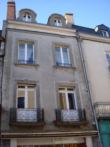 Cette maison est moins profonde que les autres maisons de cet ilot. Le plan, qui s'apparente plus à un carré allongé qu'à un rectangle, nous indique que cette maison a été totalement reconstruite. Peut-être avait-elle d'ailleurs dès sa conception une fonction d'immeuble plutôt que de maison particulière ? Deux lucarnes semi-circulaires éclairent le comble, elles sont recouvertes de ciment et étaient probablement décorées de volutes sur les parties latérales. En 1825, les propriétaires étaient les enfants Beaugeard Morinais.
