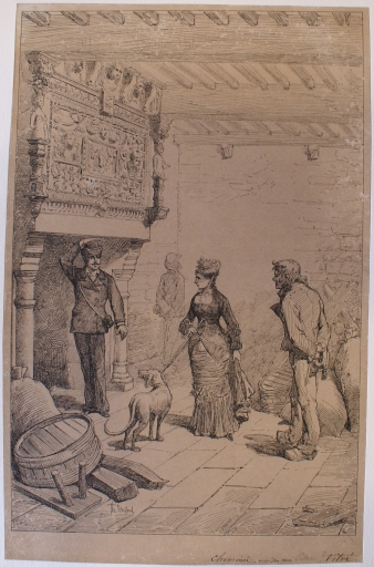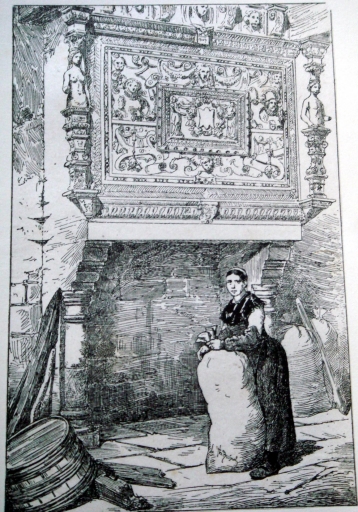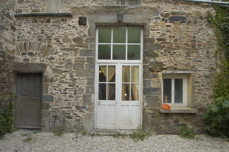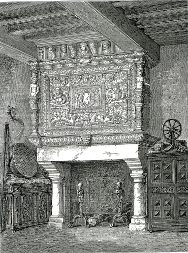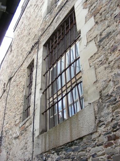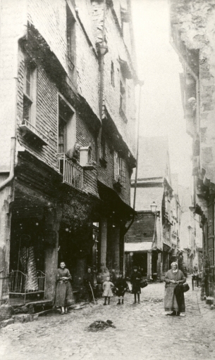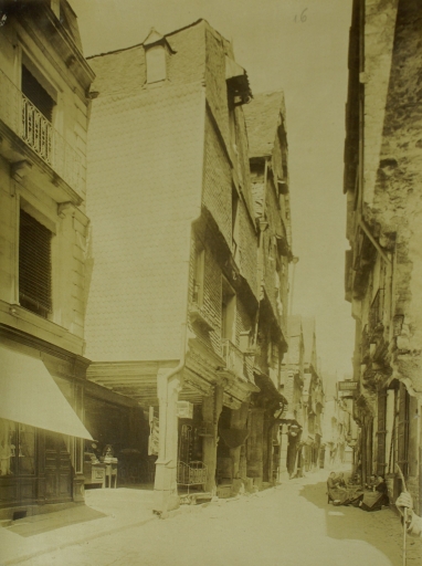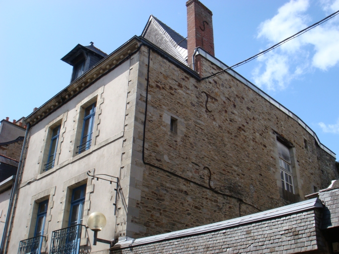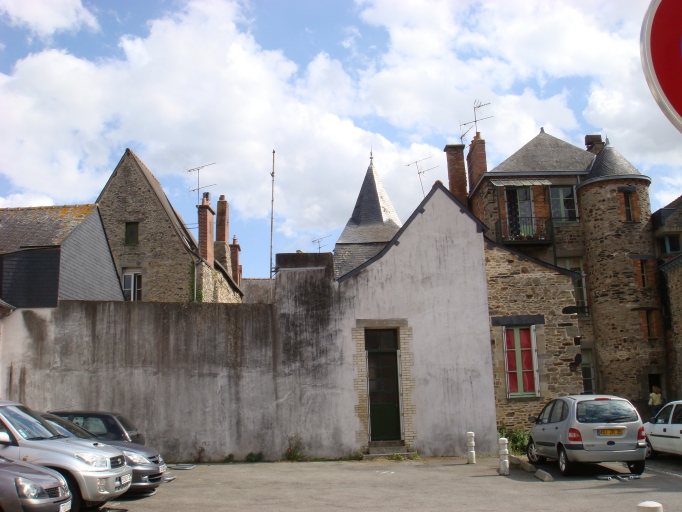 La façade sud sur rue est typique de bon nombre de façades de la rue Poterie plaquées à la fin du 19e siècle sur une demeure plus ancienne. L'iconographie conservée au musée du château de Vitré présente l'état ancien de cette façade avant sa destruction, vraisemblablement réalisée en application du plan d'alignement de 1842. A l'origine, cette façade est celle d'une maison à porche, typique de la rue Poterie. Deux piliers de bois moulurés soutiennent l'avancée de deux étages sous un comble brisé. Chaque étage est percé d'une baie, celle du premier étage étant accostée d'une seconde baie plus petite ouverte à l'angle sud-ouest du bâtiment. Comme bon nombre de maisons vitréennes en pan de bois, la façade sur rue avait été recouverte d'un essentage d'ardoise, vraisemblablement au 19e siècle. Cette demeure de grandes dimensions, proche de l'hôtel urbain, abritait sans doute une boutique au rez-de-chaussée, le porche permettant un agrandissement de l'espace commercial, à l'abri des intempéries. En revanche, les espaces intérieurs devaient être particulièrement luxueux. Une porte à l'angle sud-est de la construction s'ouvrait sur un couloir latéral desservant la cour et les étages de manière indépendante. Le caractère exceptionnel de cette construction réside principalement dans une cheminée aujourd'hui conservée au musée du château de Vitré et présentée au deuxième étage de la Tour Saint-Laurent. Cette cheminée de style Renaissance est datée de 1583 et présente un décor foisonnant de grande qualité. Ce décor a la particularité de reprendre les bustes des commanditaires de cette demeure : Lucas Royer et Françoise Gouverneur, riche couple de marchands d'Outre-Mer. En effet, au milieu du 16e siècle, Lucas Royer et son épouse, Françoise Gouverneur, occupent l'actuel n°28, la plus haute des maisons de la rue Poterie. Leurs familles ont fait fortune dans le commerce de la toile. Ancêtre de Lucas Royer, André Le Royer est membre fondateur de la Confrérie des Marchands d'Outre-Mer, créée le 10 mars 1472. Cinq Le Royer et trois Gouverneur en furent les prévôts du 15e au 17e siècle, attestant ainsi de la puissance de ces deux familles qui figurent dans le Nobiliaire de Bretagne et portent des armoiries. Datée de 1583, la cheminée monumentale commandée par Lucas Royer et son épouse est destinée à orner la pièce d'apparat de leur demeure. Rivalisant avec les cheminées en tuffeau des châteaux du Val-de-Loire, elle est le signe ostentatoire de leur ascension sociale, même si l'emploi du grès trahit une facture locale. Nous n'avons pas de certitude quand à l'auteur de cette cheminée. Toutefois, seul un sculpteur habitué à ciseler le grès - pierre très dure - a pu exécuter ce tour de force. Un nom a été avancé, celui d'André Bonnecamp, tailleur d'images, décédé à Vitré en 1616, et dont le père, Jean Bonnecamp, était lui-même sculpteur à Vitré. Dans un article publié en 1894 et intitulé « La cheminée monumentale du Musée de Vitré », Arthur de la Borderie précise que « la cheminée de Lucas Royer resta au lieu où il l'avait placée, pendant près de trois siècles, c'est-à-dire jusqu'à l'année 1876, sans nulle détérioration. Quand il venait quelque étranger curieux de belles choses ou de beaux monuments, on ne manquait pas de lui faire visiter la cheminée. Ce qui avait beaucoup changé, c'était la salle qui la contenait. Les murailles étaient nues, poudreuses. Pour tout mobilier, des mesures à blé de diverses tailles et d'immenses tas de blé occupant toute la longueur de la pièce ». La demeure qui abrite la cheminée a changé de statut et a perdu son faste ; le plan d'alignement l'amputera même de son porche, bientôt remplacé par une façade moderne. Le maire de Vitré, Monsieur Ragot, s'inquiète d'une possible disparition de la cheminée. En 1875, il propose à Monsieur du Bourg, son propriétaire, d'en faire l'acquisition. Ce dernier refuse catégoriquement, affirmant qu'il sait apprécier le chef-d'oeuvre qu'il possède. Pourtant en 1876, on apprend que la cheminée a été vendue. « Ce monument vitréen a été démonté pièce par pièce, emballé, enlevé et chargé sur le chemin de fer, déporté de Vitré à Laval ». L'acquéreur, un riche industriel lavallois, avait l'intention de construire un hôtel particulier néo-renaissance dont la cheminée aurait été la pièce maitresse. La Borderie prend contact avec le nouveau propriétaire, Monsieur de la Broise, afin de faire exécuter des moulages de la cheminée. Le propriétaire ne s'y oppose pas, mais précise que les moulages ne seront possibles que lorsque la cheminée sera remontée. Les années passent et l'hôtel n'est pas construit. On apprend alors que Monsieur de La Broise a quitté Laval pour Paris. Qu'est-il advenu de la cheminée ? On dit qu'elle a été revendue. Heureusement, il n'en est rien et en 1894, Monsieur de la Broise écrit au maire de Vitré lui proposant l'acquisition de la cheminée tant convoitée au prix de 3500 francs. Elle se trouve encore à Laval ; dans le sous-sol d'une filature d'Avesnières. « Les sculptures, depuis leur arrivée de Vitré, n'étaient jamais sorties de leurs caisses ; mais ces caisses avaient été ouvertes, on y avait jeté du charbon, des débris de toute nature. Par suite, plusieurs fleurons avaient été mutilés, plusieurs statuettes disloquées, décapitées, toutefois rien d'irréparable. » Trois maçons furent nécessaires pour charger les pièces de la cheminée rapatriées à Vitré le 17 mai 1894. La Ville acquit de plus le linteau de granite, les colonnes et les consoles qui étaient restés dans la maison de la rue Poterie ; ceci presque 20 ans après le départ de la cheminée. Son remontage au sein du musée du château se fit sous la direction de l'architecte Morin. Monsieur Valentin restaura et créa certains bustes en haut-relief inscrits dans l