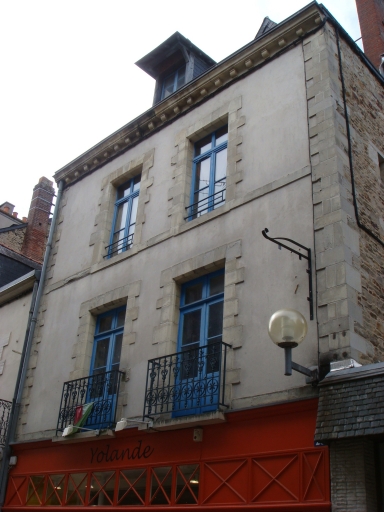 Sur un rez-de-chaussée à usage de boutique, la façade sur rue s'élève sur deux niveaux coiffés d'un comble plus bas que celui qui couvre les trois quarts du reste du bâtiment. Cette façade est rythmée par deux travées, les deux baies du premier étage s'ouvrant chacune sur un balconnet de fonte. Les deux baies de l'étage supérieur disposent d'un garde corps. Chaque niveau est marqué par un bandeau de grès. Les chaînages d'angle, comme les encadrements des baies et la corniche à modillons sont également en grès. Le comble est éclairé d'une lucarne à la capucine. La façade a reçu un enduit recouvrant le mur constitué de moellon de grès, appareillage toujours visible et resté nu sur le mur Est du bâtiment. La façade nord sur cour est construite en moellon de grès et de schiste. Cette façade pignon présente une travée composée de quatre baies superposées dont les dimensions se réduisent au fur et à mesure que l'on se rapproche du comble. Au rez-de-chaussée, une large baie donne directement sur l'ancienne cour et a conservé son encadrement de grès chanfreiné. La menuiserie actuelle est composée d'une imposte surmontant deux vantaux. Les baies des premier et deuxième étages sont encadrées de blocs de grès taillés de grande qualité, tandis que la petite baie éclairant le comble reste très modeste avec son appui et son linteau de bois. La baie du rez-de-chaussée est accostée, à l'ouest d'une petite baie quadrangulaire dont l'appui est en ciment et à l'Est, d'une porte à l'encadrement de grès chanfreiné dont le linteau présente une très discrète accolade. La menuiserie sculptée de cette porte a été conservée. La baie du premier étage jouxte, à l'Est, une porte murée dont l'encadrement est identique à celui des baies des étages supérieurs. La façade ouest est percée de plusieurs baies dont certaines de grandes dimensions ne sont pas sans rappeler celles du numéro 20, avec leurs encadrements de grès. Certains appuis sont en granite. D'autres, plus petites sont ouvertes à l'angle nord-ouest et éclairent l'escalier.