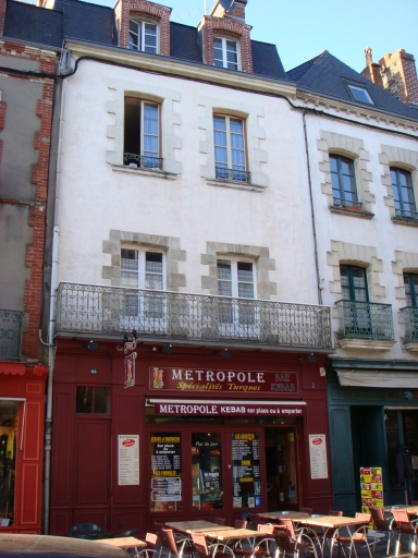 A l'instar des autres constructions de cette partie de la rue, le rez-de-chaussée de ce bâtiment abrite une boutique. Deux travées rythment la façade des niveaux supérieurs ; le premier étage dispose d'un balcon filant. Le comble brisé couvert d'ardoise est percé de deux lucarnes en brique.