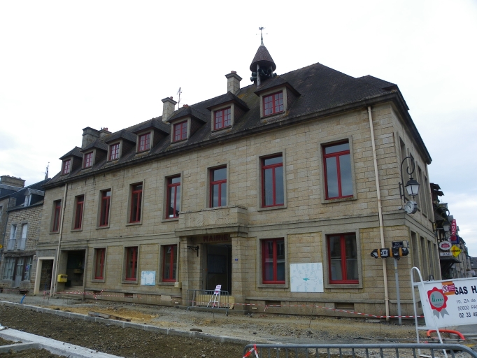 L'actuel Hôtel de Ville a été construit en 1957, en lieu et place de l´ancienne Halle-Mairie. Cette dernière avait elle même été reconstruite au milieu du 19e siècle à l'emplacement de halles encore plus anciennes. Une expertise menée en 1818 par le maire de Mellé dans le cadre d'un contentieux entre le propriétaire, le seigneur de Poilley, et la municipalité, nous offre la description suivante du bâtiment : " La halle de Saint-Georges se compose de deux ailes dont l´une se prolonge vers le midi et l´autre longe la rue principale. La première est soutenue par douze piliers en pierre dont les intervalles sont maçonnés à la hauteur de 325 mm (32,5 cm), ayant en longueur 17,55 mètres sur 6,5 mètres. La Charpente se forme de six liaisons sur entraits, sablières doubles, deux filières et un poinçon à simples liens, le tout sans plancher, nous avons comptés 72 chevrons sciés. La couverture sur lattes en rondin et de chaumes. (...) La seconde aile est supportée par huit piliers construits de la même dimension que ceux de la première, dont quatre annoncent ruine prochaine. Pignon en pierre au levant jusqu´à l´arras (?) et aiguille en terre qui forment liaison. Quatre liaisons composent la charpente, lesquelles sont sur entraits. Nous avons compté 49 chevrons sciés, couverture en paille sur latte de rondin." A partir de 1840, les halles sont "reconstruites" (mais quels furent les travaux exacts ?) par M. Le Duc, entrepreneur à Louvigné-du Désert. Le montant total des travaux s'élevera à 15530,05 francs.