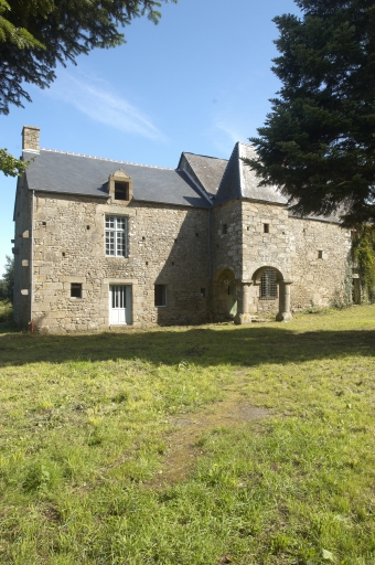 L´ancien manoir ainsi que ses dépendances : métairie, chapelle, fournil... sont figurés sur le premier cadastre communal réalisé en 1832. Le manoir de la Bretonnière avait un droit de haute justice. Il appartenait aux de Coglès en 1430, puis aux du Châtellier en 1470. C´est vraisemblablement l´une de ces deux familles qui a été commanditaire de la construction de la partie Est du logis. Par la suite, il passe par alliance à de nombreuses familles dont celle de Pinczon, seigneurs de la Pinczonnière à la fin du 16e siècle puis, il passe aux Hay des Nétumières au 17e siècle. En 1789, la Bretonnière appartenait aux des Euzenou, seigneurs de Kersalaun. Le corps de logis se trouve au nord-est de l´ancien ensemble manorial, alors que les dépendances se trouvent plutôt au sud et que les bâtiments situés à l´ouest semblent correspondre à l´ancienne métairie. Le manoir possédait également une chapelle qui a été détruite en 1841, il est fort possible qu´il s´agisse du bâtiment figuré au sud-ouest du logis sur le cadastre de 1832. En effet, ce bâtiment n´existe plus actuellement et la partie Est de ce dernier était composée de trois pans rappelant l´orientation et la forme du chevet d´une chapelle. Cette chapelle existait déjà au milieu du 17e siècle, date à laquelle elle est mentionnée au moment de la présentation par Françoise Pinzcon, dame de la Bretonnière, de François Macé pour desservir la chapelle. Cette chapelle était déjà ancienne à l´époque car, Madame de Marboeuf dut la faire réparer en 1684. La fondation de la chapelle remontait peut-être à la date de construction du logis, c´est-à-dire le milieu ou la seconde moitié du 15e siècle. La salle du rez-de-chaussée est équipée d´une cheminée dont le décor est propre à l´architecture de la seconde moitié du 15e siècle (corniche entre le linteau et la hotte, décor des corbeaux...). La fenêtre de la salle située en façade sud possède une grille en fer forgé dont le centre est orné d´un losange. Cette fenêtre est équipée, à l´intérieur, de coussièges (bancs ménagés dans l'ébrasement d´une fenêtre afin de profiter de la lumière du jour, de lire ou de pouvoir observer ce qui se passe à l´extérieur). A gauche de la cheminée située sur le mur de refend Est, se trouve une porte de communication avec la pièce à feu située à l´Est. Cette pièce possède une cheminée sur le mur pignon Est ; cette dernière est de taille beaucoup plus réduite que celle de la salle. Dans l´angle sud-ouest de cette pièce, sont visibles les vestiges d´un escalier en vis en bois qui desservait les deux pièces de l´étage. Ces deux pièces étaient situées au-dessus de celles du rez-de-chaussée ; il s´agissait de deux chambres. Celle qui se trouve au-dessus de la salle du rez-de-chaussée possède une porte en façade sud qui donnait accès au cabinet situé au-dessus du porche de l´entrée. Cette pièce était-elle une pièce destinée à l´observation des environs ou bien plus vraisemblablement un cabinet de retrait (pièce de travail conçue pour que l´on puisse s´y isoler) ? La chambre de l´étage située à l´Est possède, comme la salle, une cheminée datable des environs du milieu du 15e siècle ; le réglet soulignant la face antérieure de l´unique colonne formant piédroit est en effet tout à fait caractéristique de cette époque en architecture. Alors que la partie Est du logis est relativement uniforme en termes d´architecture et de datation (milieu, voire seconde moitié du 15e siècle), la partie ouest de l´édifice, beaucoup plus remaniée et par conséquent beaucoup plus difficile à interpréter, semble avoir été ajoutée par la suite. Toutefois, grâce à des photographies prises dans les années 1970 lors d'une précédente enquête d'inventaire du patrimoine, nous connaissons l'aspect originel de cette partie qui a été quelque peu transformée depuis cette époque. Il semble que l'étage de cette partie a été occupé par une pièce à feu car la façade sud est percée d'une fenêtre de dimensions importantes. Dans les années 1970, il existait encore à la Bretonnière, au dessus du pilier Est du porche, un exceptionnel cadran solaire portant le monogramme du Christ IHS. Ce cadran solaire a aujourd'hui malheureusement disparu. Les bâtiments de dépendances qui se trouvent au sud du logis abritait, d'ouest en est, un fournil, un cellier/étable ainsi qu'une grange.