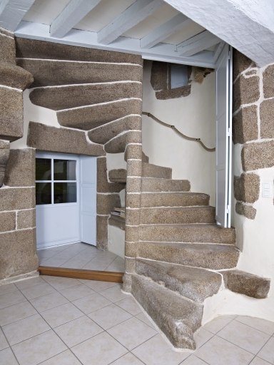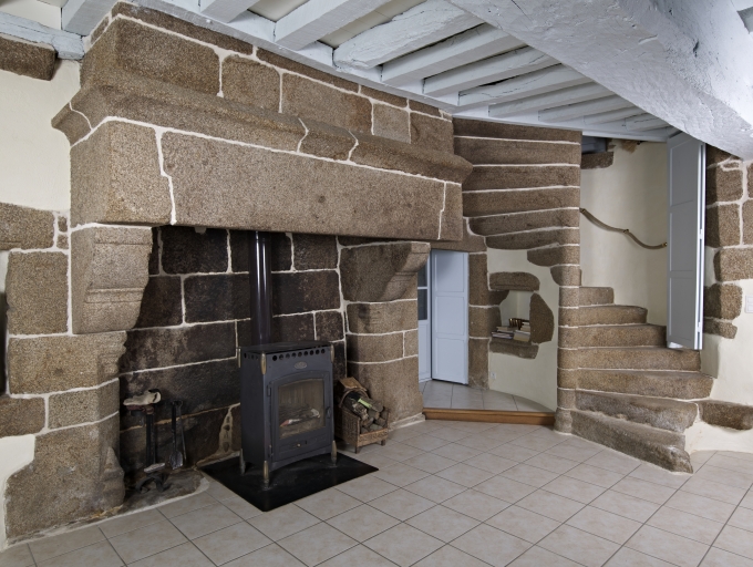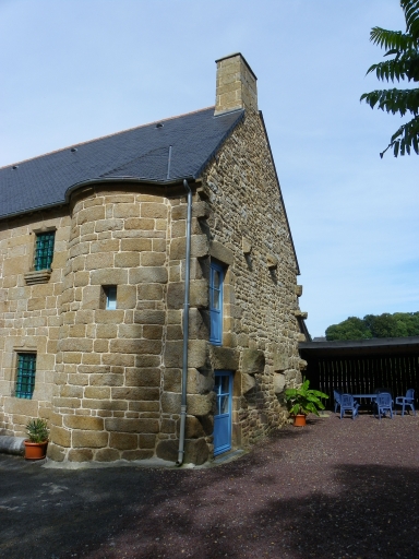 Cette maison est implantée au nord de la chapelle et à l'est de la ferme, elle est orientée selon un axe sud-ouest/nord-est. La façade principale, ouvrant au sud, est maçonnée en pierre de taille et moellon de grand appareil, et est couronnée d´une corniche en cavet. Elle propose deux portes en plein cintre et une fenêtre au rez-de-chaussée, ainsi que deux fenêtres à l´étage. Le bâtiment est remarquable par la présence en façade principale d´une tour d´escalier en demi hors-oeuvre. L'escalier en vis, qui existe toujours, est en granite et à marche portant noyau. La porte principale, au centre, desservait la pièce de vie tandis que la porte à l´ouest ouvrait sur le cellier. On trouve une cheminée dans la pièce de vie, sur le pignon est, ainsi qu'à l'étage sur le même mur. Le rez-de-chaussée accueille en outre des éléments de la vie quotidienne, comme un vaisselier dans le mur nord-ouest et un placard dans le mur nord-est. Les décors se concentrent, comme souvent sur les bâtiments de cette époque, sur les ouvertures, avec les appuis de fenêtres moulurés et les encadrements chanfreinés, ainsi que sur les cheminées. Les cheminées, monumentales, sont dotées de consoles moulurées et de piédroits chanfreinés. La charpente est également dotée de décors, elle possède deux fermes avec poinçon mouluré.