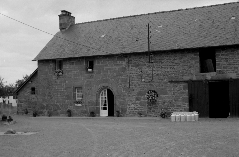 Cette ferme, implantée en contrebas de la maison de prêtre, est orientée nord-sud. Le logis présente une façade en pierre de taille et moellon percée d´une porte en plein cintre ouvragée et d´une fenêtre au rez-de-chaussée. Ici encore, les décors sont portés sur les ouvertures avec un appui et des encadrements moulurés pour la fenêtre de l´étage. La partie agricole au nord, possède encore une porte en plein cintre, aux dimensions plus modestes que celle du logis. On trouve également une porte charretière surmontée d'une gerbière. La toiture est à longs pans, couverte en ardoise.