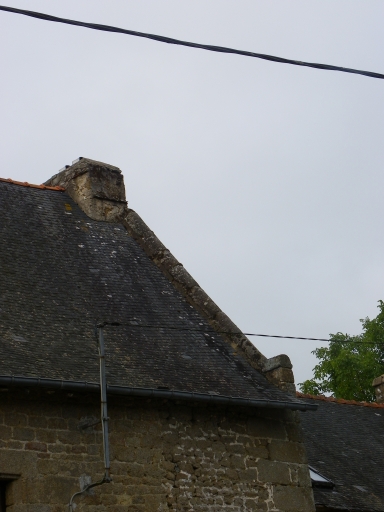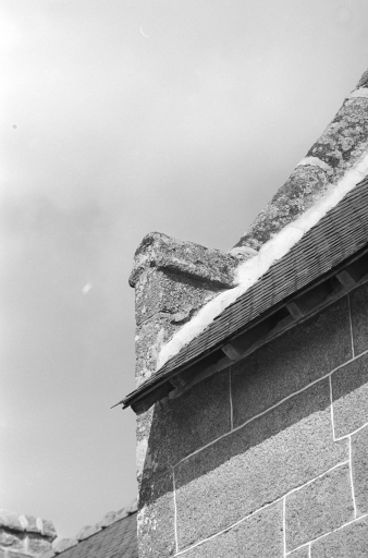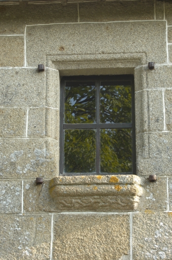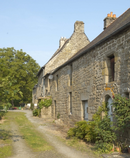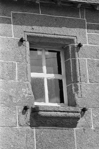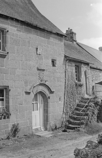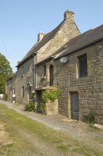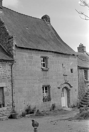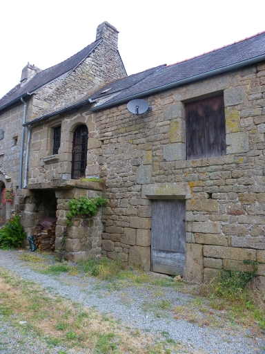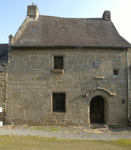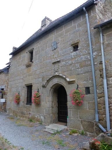 Inscrite dans un alignement de fermes, cette maison est remarquable par le traitement qu'elle a reçu dans sa construction. Maçonnée en pierre de taille de granite, elle possède une façade principale, au sud, typique avec porte et fenêtre au rez-de-chaussée complétée d'une second fenêtre à l'étage. On trouve cependant également de petites ouvertures destinées à éclairer la cage d'escalier sur la partie droite de la façade. La maison est cloisonnée en quatre parties, on entre dans une première pièce desservant une seconde pièce dans la continuité et la pièce principale à l'ouest, dotée d'une cheminée. De cette pièce, on accède à un dernier espace au nord. Les deux pièces au nord sont également accessibles de l'extérieur par des portes. Les décors ornent principalement les ouvertures, par des chanfreins et moulures, que ce soit au niveau des encadrements comme des appuis de fenêtres. Parmi les éléments remarquables, on peut citer la porte d'entrée en plein cintre, dotée d'une archivolte elle même surmontée d'une armoirie que nous n'avons pas identifiée. L'appui de fenêtre de l'étage, possède un décor végétal. On trouve aussi sur le linteau de la cheminée un calice sculpté dans un écu, couronné d'un animal. La toiture, à longs pans et coyau, est à pignon découvert à l'ouest et pignon couvert à l'est, l'ensemble étant couvert d'ardoise. La façade postérieure possède une intéressante porte à linteau sculpté en accolade, ainsi qu'une fenêtre ouvragée à l'étage.