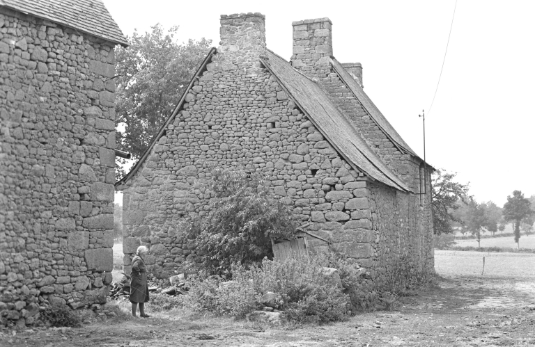 Orientée est-ouest, cette maison s'inscrit dans un petit écart de cinq bâtiments et était mitoyenne d'une autre maison ancienne à l'origine, qui a disparu aujourd'hui. De plan grossièrement carré, elle offre une façade sud percée de deux portes et d'une petite fenêtre au rez-de-chaussée, ainsi que d'une seconde fenêtre à l'étage. Le mur, en maçonnerie de moellon de granite, est couronné par une corniche en cavet que l'on retrouve sur la façade nord. Cette dernière est également percée d'une porte et accueille l'ancien évier. Etonnamment, puisque de taille modeste, on trouve une cheminée par étage, la première étant apposée sur le mur pignon ouest au rez-de-chaussée et la seconde sur le pignon opposé à l'étage. De plus, on n'a pas repéré l'ancien emplacement de l'escalier permettant d'accéder à l'étage. Autre spécificité de cette maison, le soin apporté aux décors. On retrouve, comme il est très fréquent sur les constructions de ce siècle, des ouvertures chanfreinées, mais, plus rare, une fleur de lys sculptée dans l'accolade du linteau de la fenêtre du rez-de-chaussée.