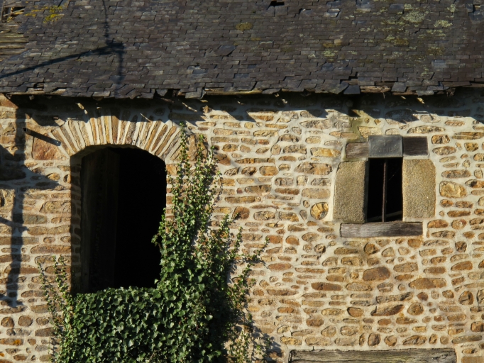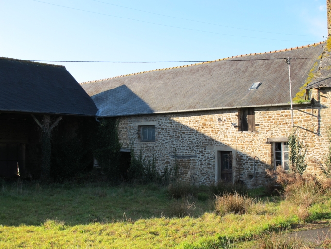 La maçonnerie des bâtiments composant cette ferme est en moellon de granite, quelques encadrements de baies sont réalisés en pierre de taille de granite, mais la plupart ont juste un linteau de bois. Quelques baies ont été remaniées. Le corps de logis principal présente une baie cintrée à l'étage, le cintre est composé de pierres dressées. La pièce de l'étage possédait une cheminée en pierre à linteau appareillé en claveaux. La toiture de cette partie à longs pans est couverte en ardoise elle présente une forte pente brisée par un léger coyau. La charpente la plus travaillée a des liens courbes et un poinçon chanfreiné avec un gousset.