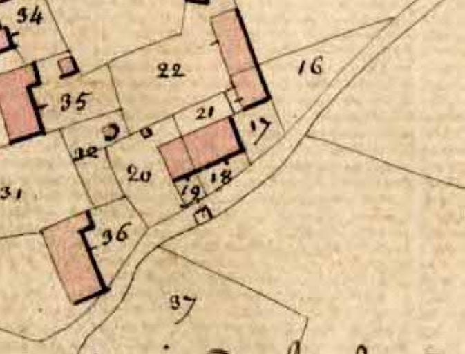 Cette ancienne ferme possède divers attributs de la première moitié du 17e siècle, notamment le pignon découvert, la porte en plein cintre ou encore le jour d'escalier en meurtrière. La ferme a ensuite connu des modifications au niveau des ouvertures au 19e siècle, alors que la souche de cheminée a été déplacée. La petite maison dans l'alignement de la ferme a également été modifiée depuis le dernier tiers du 20e siècle. On pouvait observer alors un escalier droit en façade principale desservant l'étage.