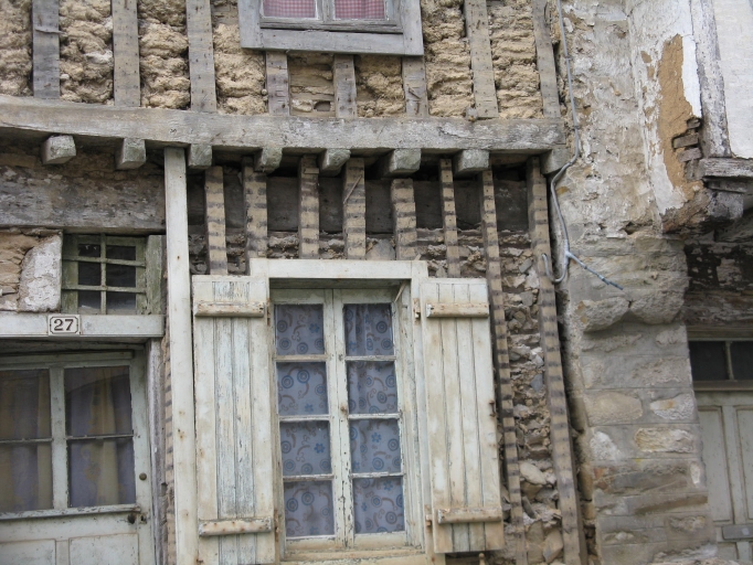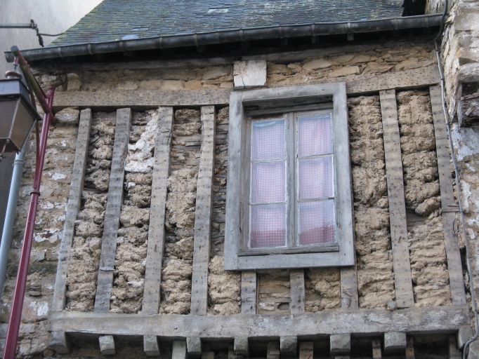 - La façade sur la rue du Bourg-aux-Moines présente au rez-de-chaussée comme au premier étage des poteaux de remplissage. Ces éléments nous indiquent qu’initialement la façade était protégée par un enduit.