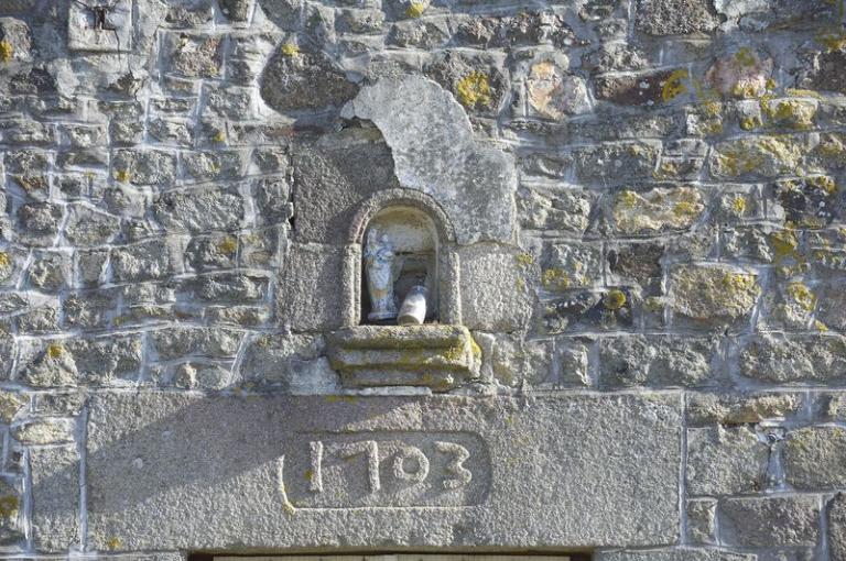 L’alignement qui nous concerne est figuré sur le cadastre napoléonien, il se compose de trois corps de bâtiment disposés en alignement. Celui du milieu est le plus élevé et le seul daté. En effet, on peut lire sur le linteau de la porte (aujourd’hui remaniée en fenêtre) 1703. Au-dessus de ce linteau se trouve une jolie niche à statue. Il s’agit du seul bâtiment présentant un intérêt dans cet alignement même si celui-ci a subi quelques remaniements notamment au niveau des ouvertures : jour bouché, porte transformée en fenêtre, ajout de percements…