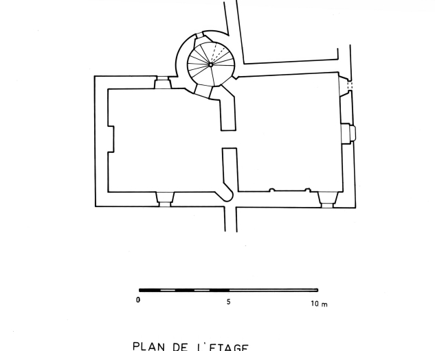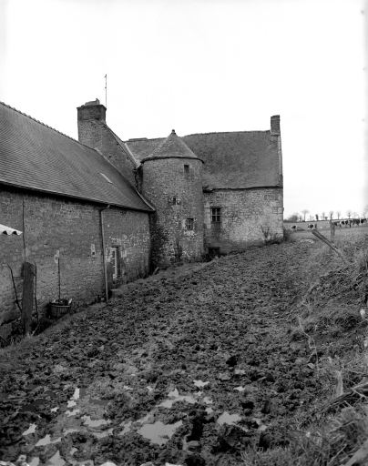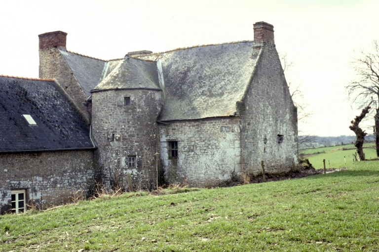 Ce bâtiment est constitué de deux parties. Le premier logis, à l´ouest, est de plan rectangulaire et présente un étage habité. Sa façade principale est exposée au sud. Il est flanqué, au milieu de sa partie est, d´un escalier à vis hors-œuvre, inscrit dans une tour ronde, qui dessert les deux pièces de l´étage. Ce logis est prolongé, côté est, d´un bâtiment de plan rectangulaire dont la façade, tout en longueur, est également exposée au sud. Ce bâtiment, plus bas, n´était probablement habité qu´au rez-de-chaussée à son origine. L´ensemble de ces deux bâtiments forme un plan en L, dont l´angle est occupé par la tour. La première partie est la plus intéressante puisqu´elle a bénéficié d´un soin particulier dans sa mise en œuvre. La maçonnerie, tout en granite, est composée de pierres de taille disposées avec régularité. Deux toitures à longs pans couvertes d´ardoise sont disposées à la perpendiculaire, formant deux noues. La toiture perpendiculaire à la façade dispose d´un coyau sur sa partie basse. Le pignon nord est débordant. La façade présente un réel intérêt. Toutes les ouvertures ont des bords chanfreinés. La porte d´entrée frappe par son décor très élaboré. Son arc surbaissé est surmonté d´un tore en accolade. La pointe de l´accolade se termine en fleuron et est entourée d´un décor végétal. On retrouve un décor assez semblable sur l´ancien logis du château de Beauvais à Noyal-sous-Bazouges. Le linteau surmontant la fenêtre, à gauche de l´entrée, est orné d´une double accolade et porte le nom du commanditaire ainsi que la date 1575, correspondant à la fondation de la maison. La petite fenêtre de l´étage a un appui saillant et une petite accolade sur sa partie supérieure. Au-dessus de la porte d´entrée, un œil de bœuf éclaire la pièce située à l´étage. La tourelle comprenant un escalier et situé au nord-est du bâtiment est couvert d´un toit conique en ardoise. Il existait trois pièces à feu dans ce bâtiment. Ainsi, la double cheminée située sur le pignon ouest chauffait la salle du rez-de-chaussée ainsi qu´une des chambres de l´étage. L´autre chambre à l´étage, celle située au nord, bénéficiait d´une troisième cheminée. Sous cette chambre, une pièce froide pouvait servir de cave. Le dénivelé du terrain fait que cette pièce est à moitié enterrée. Sur le plan réalisé en 1980, on voit dans la chambre de l´étage, partie nord, un décroché dans l´épaisseur du mur. Il pourrait s´agir de latrines.